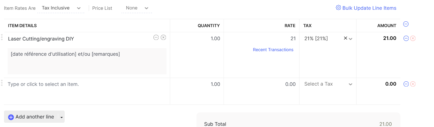 Création d'un devis "Estimate +" ou d'une facture "Invoice +"